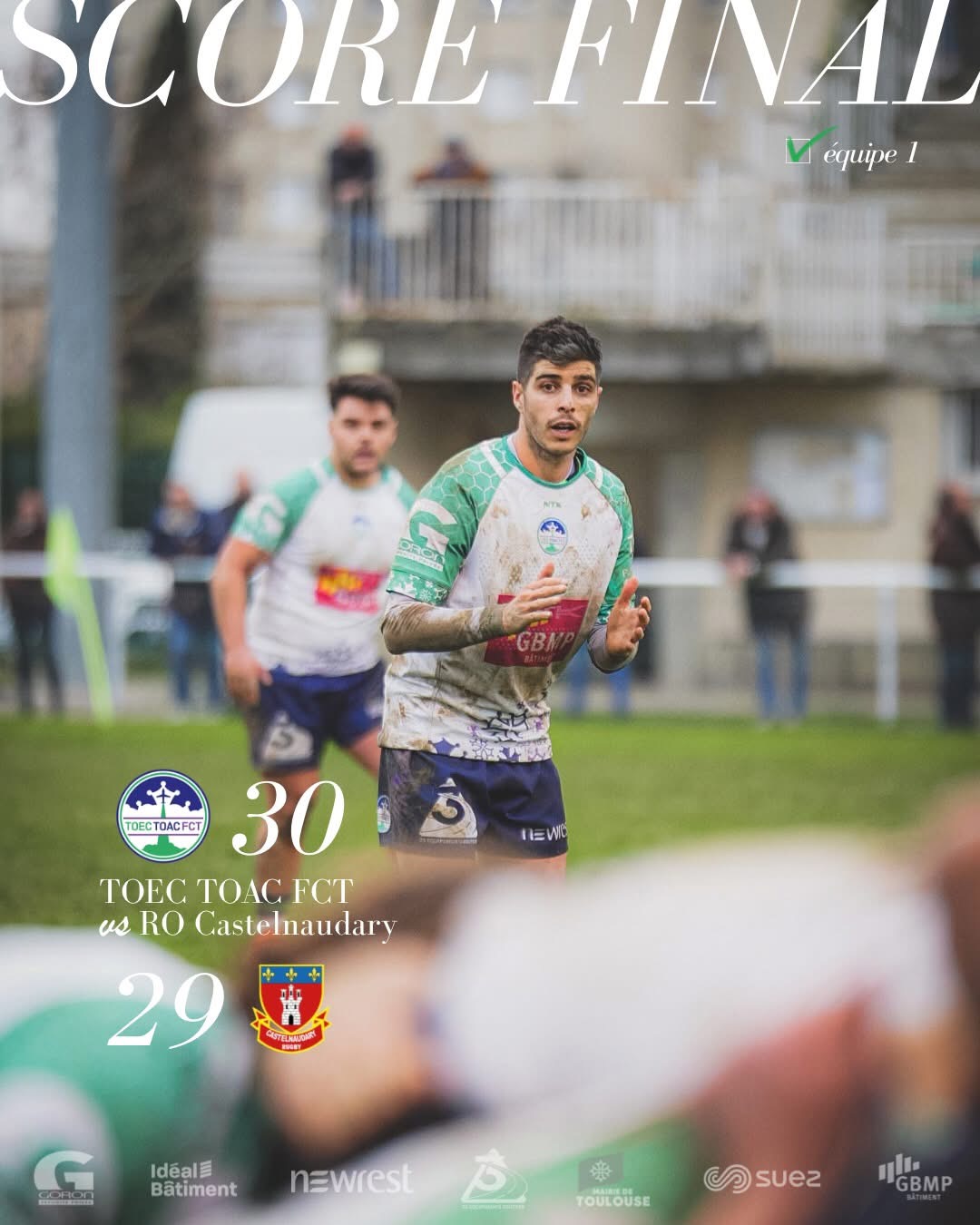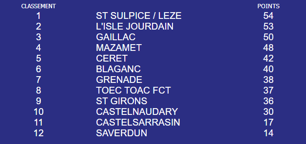 Victoire décrochée dans les dernières minutes d’un match durant lequel chaque équipe a eu sa mi-temps. Malgré des conditions météorologiques difficiles et une belle équipe de Castelnaudary, nos toulousains remporte de précieux points leur permettant de s’éloigner de leur adversaire du jour mais également de rester au contact des places qualificatives.